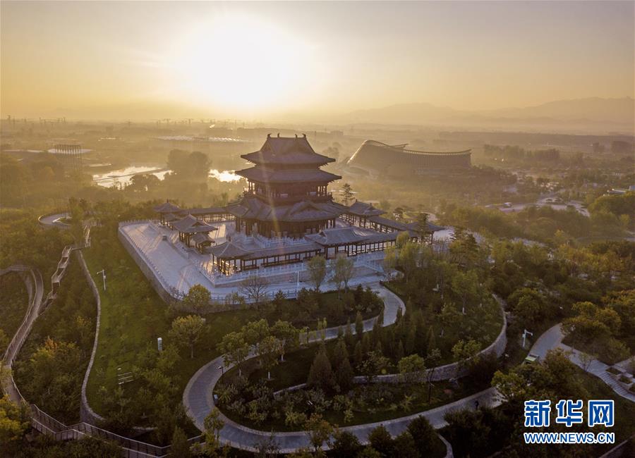 北京世園會園區(qū)內(nèi)的媯汭劇場(10月7日無人機拍攝)。新華社記者王毓國攝