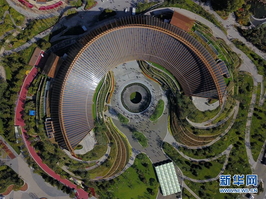 北京世園會國際館(10月6日無人機拍攝)。新華社記者張晨霖攝