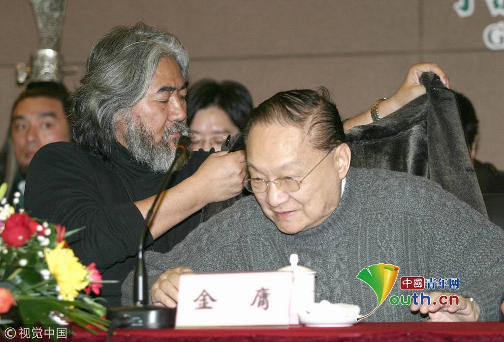 2005年1月10日,《神雕俠侶》劇組正式在第三個(gè)拍攝地—寧波象山開機(jī)。金庸與導(dǎo)演張紀(jì)中。