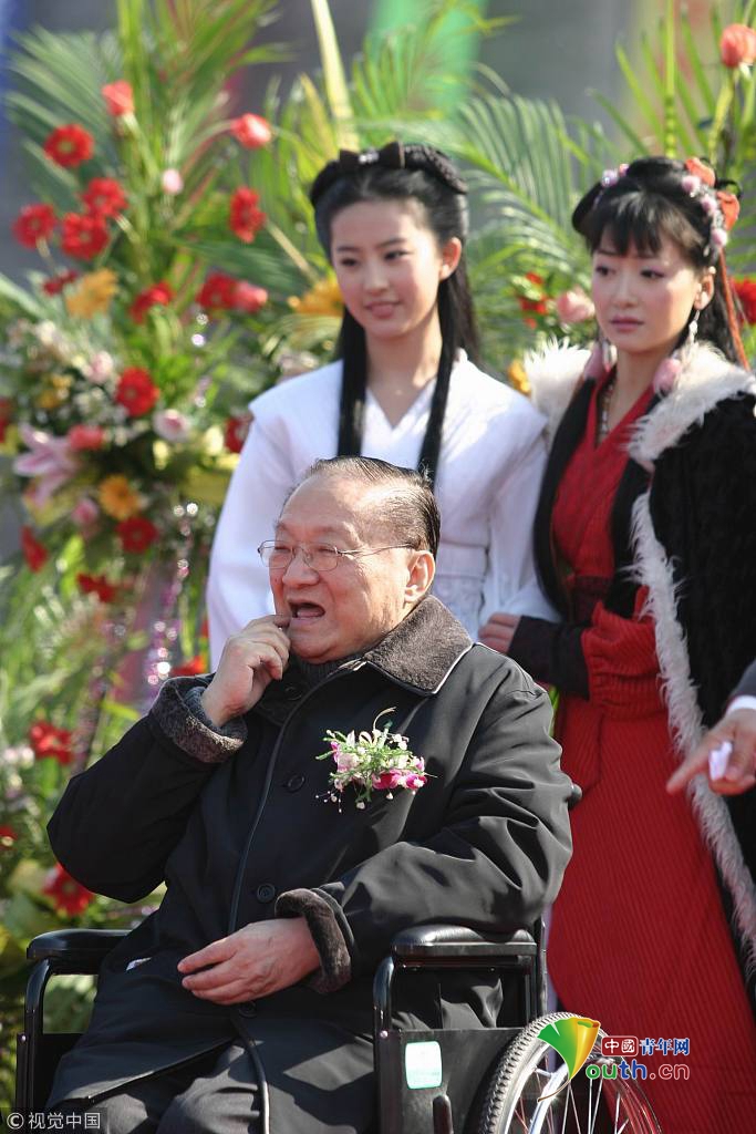 2005年1月10日,《神雕俠侶》劇組正式在第三個拍攝地—寧波象山開機。金庸與劉亦菲在一起。