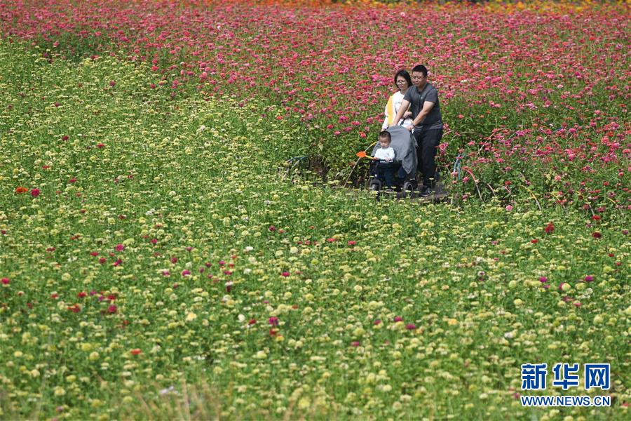 10月9日,小朋友和家長(zhǎng)在四季花海城市公園游玩。 秋日時(shí)節(jié),位于安徽省合肥市的四季花海城市公園花香四溢,色彩繽紛,成為游客和市民休閑游玩的好去處。 新華社記者 張端 攝