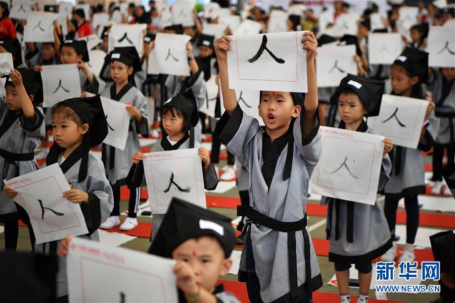10月13日,參加儀式的小朋友在宣讀開(kāi)筆誓言。當(dāng)日,海口胡畫(huà)少兒藝術(shù)中心為500名小朋友舉行“開(kāi)筆禮”,通過(guò)“點(diǎn)朱砂,啟智慧”“習(xí)書(shū)法,描人字”等儀式讓孩子們體驗(yàn)中國(guó)傳統(tǒng)文化。新華社記者郭程攝