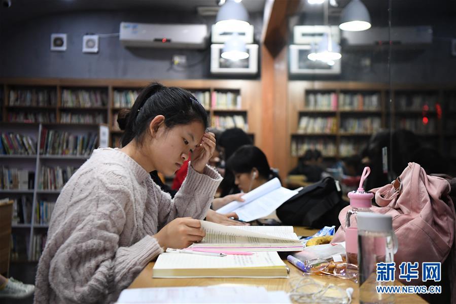 10月12日,一位讀者在湖南圖書館6點至24點開放的自助圖書館內看書學習。新華社記者薛宇舸攝