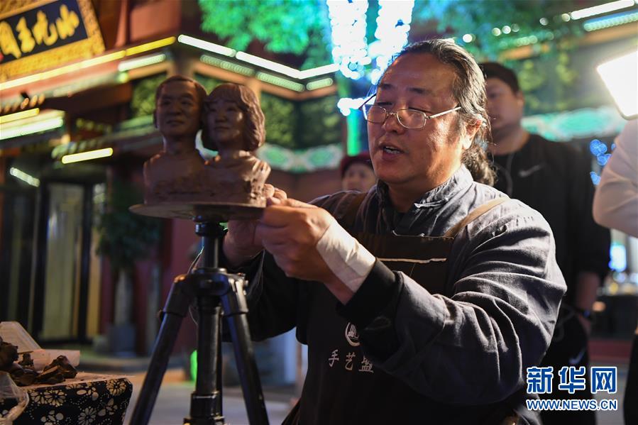 10月12日,長沙火宮殿內一名泥塑手藝人在為顧客捏塑像。新華社記者薛宇舸攝