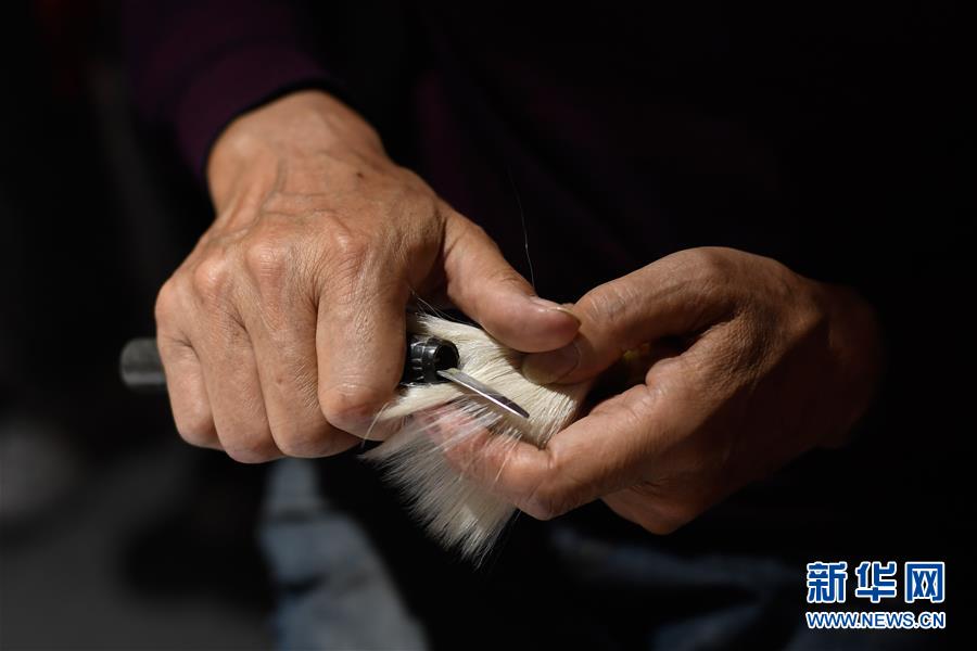 10月14日,湖筆制作技藝國家級代表性傳承人邱昌明在非遺活態(tài)傳承館展示湖筆制作的擇筆技能。新華社記者 黃宗治 攝