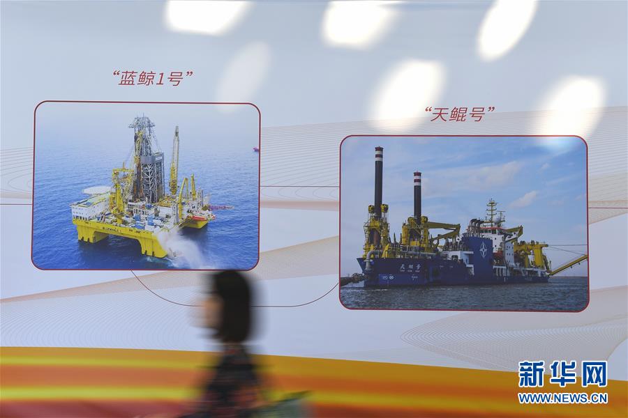 10月15日,與會者經(jīng)過“藍(lán)鯨1號”鉆井平臺與“天鯤號”自航絞吸挖泥船展板。 當(dāng)日,2019中國海洋經(jīng)濟(jì)博覽會在深圳開幕,大批海洋“大國重器”及高新技術(shù)研發(fā)成果亮相。 中國海洋經(jīng)濟(jì)博覽會被譽(yù)為“中國海洋第一展”。2019中國海洋經(jīng)濟(jì)博覽會以“藍(lán)色機(jī)遇、共創(chuàng)未來”為主題,吸引450余家企業(yè)和機(jī)構(gòu)參展,將重點(diǎn)圍繞現(xiàn)代港口建設(shè)、海洋高新技術(shù)與裝備制造、海洋可再生能源利用、海水淡化與綜合利用等熱點(diǎn)領(lǐng)域,推出新技術(shù)成果,推進(jìn)中外企業(yè)洽談合作。 新華社記者毛思倩攝