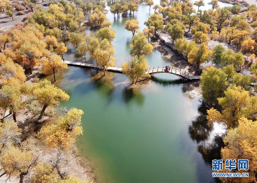 這是在內(nèi)蒙古自治區(qū)額濟(jì)納旗拍攝的胡楊林(10月16日無(wú)人機(jī)拍攝)。新華社記者丁洪法攝