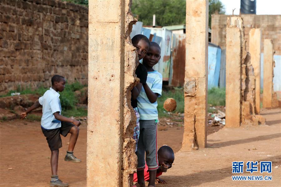 10月16日,在肯尼亞內(nèi)羅畢基貝拉貧民窟,孩子們?cè)诜艑W(xué)后玩耍。新華社記者王騰攝