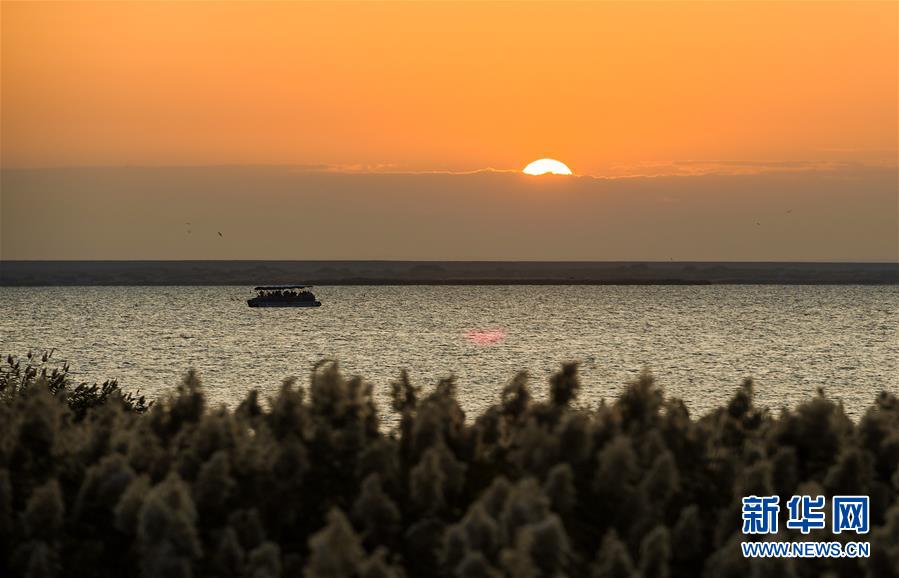這是10月17日拍攝的日出時分的居延海風(fēng)光。新華社記者 彭源 攝