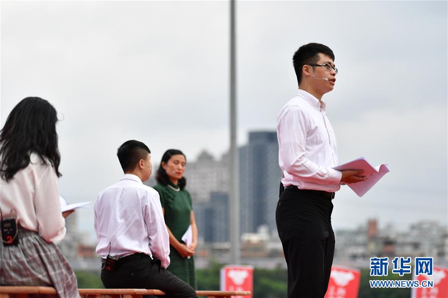 10月19日,參與秋祭活動(dòng)的年輕人在活動(dòng)現(xiàn)場(chǎng)表演行動(dòng)劇《激進(jìn)1949》。  新華社記者 陳斌 攝