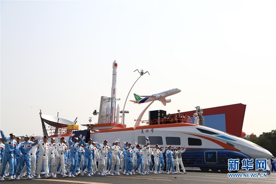 10月1日上午,慶祝中華人民共和國成立70周年大會在北京天安門廣場隆重舉行。這是“創(chuàng)新驅(qū)動”方陣。 新華社記者 劉續(xù) 攝