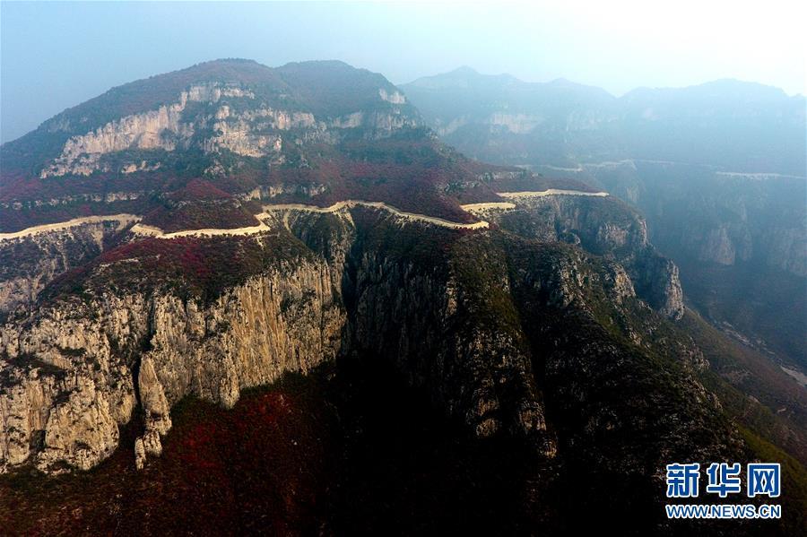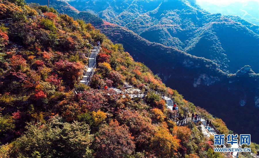 這是10月19日無人機拍攝的河北省涉縣太行紅葉大峽谷景色。金秋十月,河北省涉縣偏城鎮(zhèn)太行紅葉大峽谷的紅葉進入觀賞佳期,吸引眾多游客前來登山賞景。新華社記者王曉攝