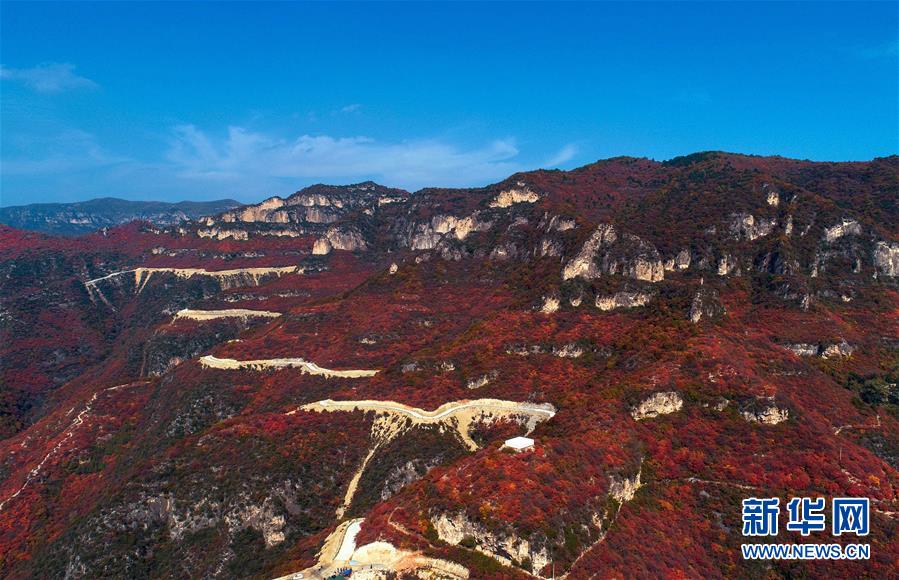 這是10月19日無人機拍攝的河北省涉縣太行紅葉大峽谷景色。新華社記者王曉攝