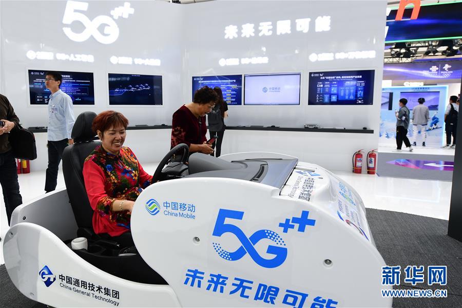 10月21日,一名參觀者在浙江烏鎮(zhèn)舉行的互聯(lián)網(wǎng)之光博覽會上體驗基于5G技術的遠程駕駛系統(tǒng)。新華社記者尹棟遜攝