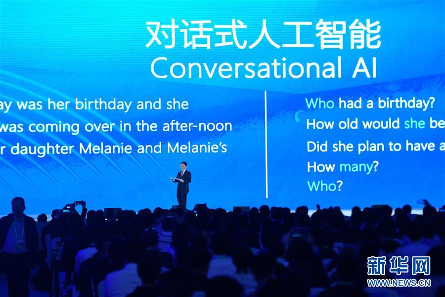 10月20日,微軟公司代表在介紹“統(tǒng)一自然語言預訓練模型與機器閱讀理解”。新華社記者黃宗治攝