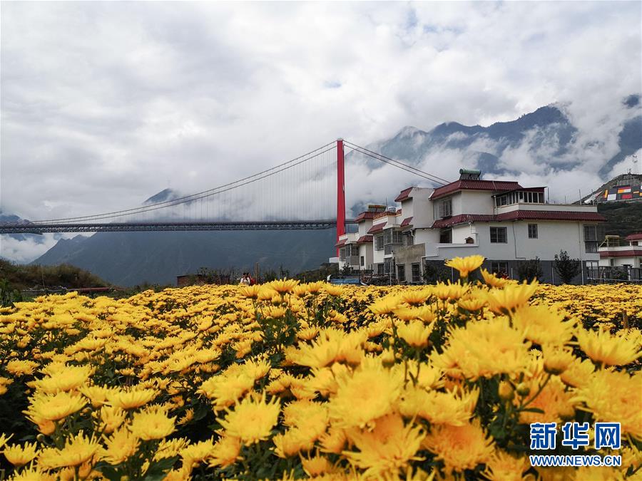雅康高速瀘定大渡河大橋下的瀘橋鎮(zhèn)咱里村試種的金絲黃菊迎來(lái)豐收(10月16日攝)。 新華社記者 江宏景 攝