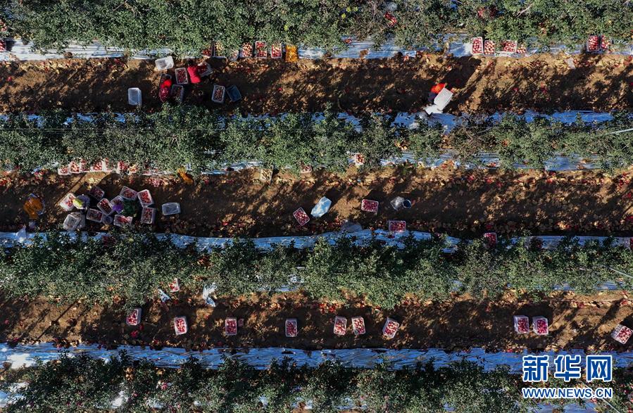 10月25日,灤州市王店子鎮(zhèn)農(nóng)民在采摘蘋(píng)果(無(wú)人機(jī)拍攝)。