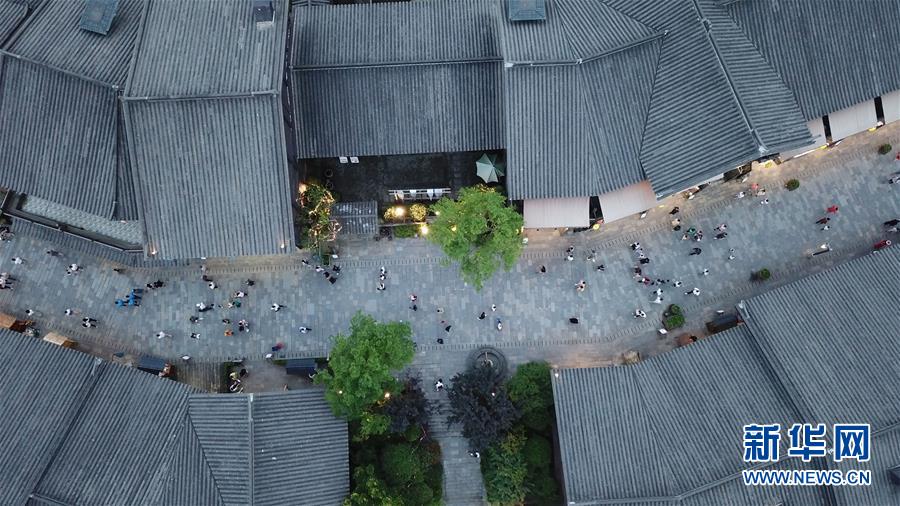 7月2日,游客在丹寨萬達(dá)小鎮(zhèn)游覽(無人機拍攝)。新華社記者歐東衢攝