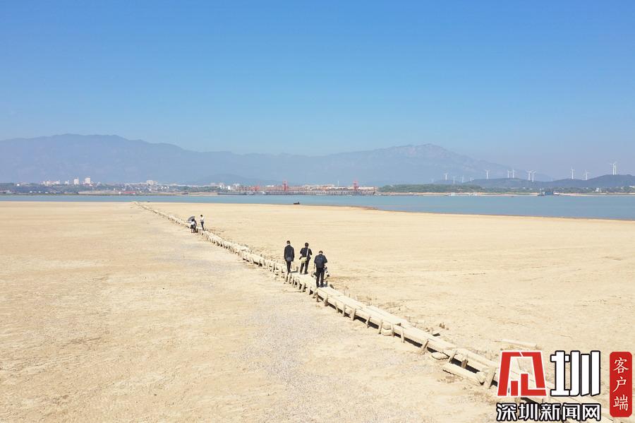 江西九江,隨著水位持續(xù)下降,豐水期浸泡在鄱陽(yáng)湖底被譽(yù)為“中國(guó)最長(zhǎng)的湖中古木石橋”露出水面。