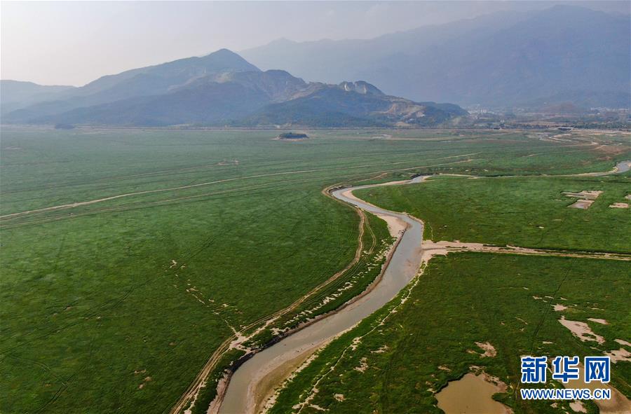 這是在江西省廬山市拍攝的鄱陽湖湖區(qū)(10月9日無人機(jī)拍攝)。
