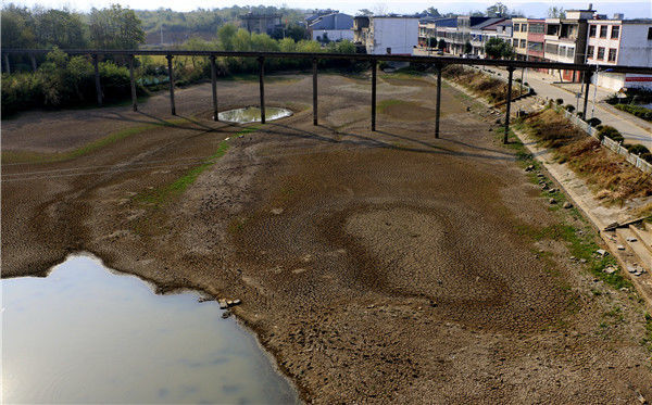 2019年10月4日,江西彭澤縣黃嶺鄉(xiāng)芳湖村,池塘干枯見(jiàn)底。