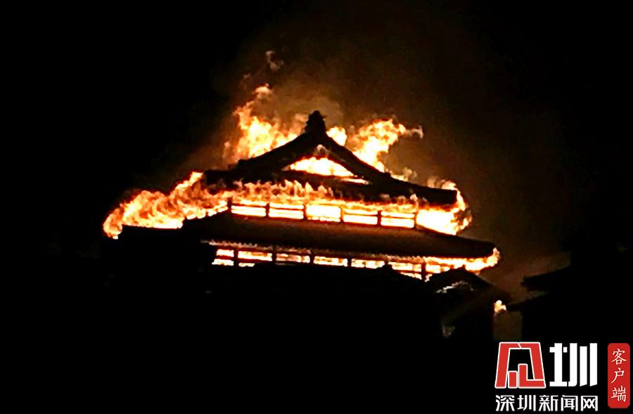 日本沖繩縣那霸市的琉球王國都城遺址首里城火災(zāi)現(xiàn)場。