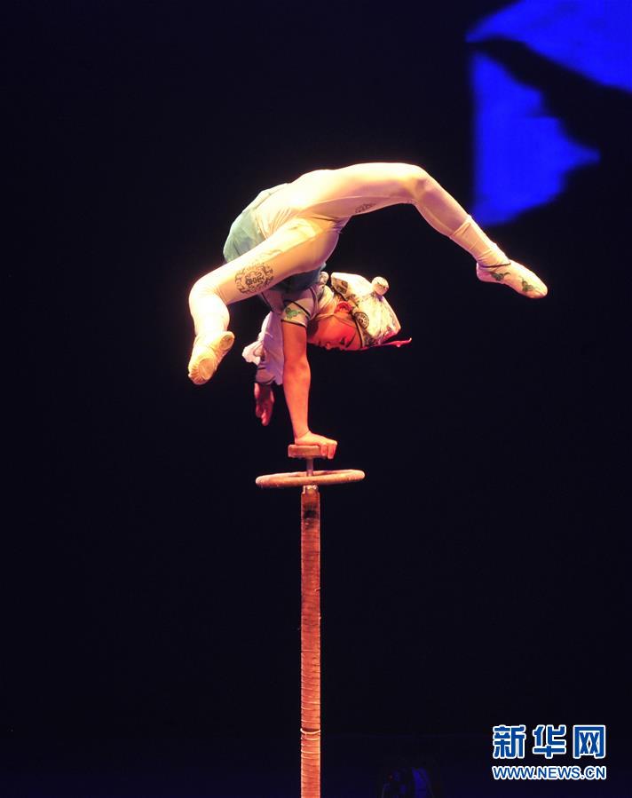 11月3日,來自埃塞俄比亞的演員在表演《蹬技》。 當日,第十七屆中國吳橋國際雜技藝術(shù)節(jié)滄州會場世界雜技精品惠民展演在河北省滄州市體育館舉行。中國吳橋國際雜技藝術(shù)節(jié)創(chuàng)辦于1987年,每兩年舉辦一屆,是我國雜技藝術(shù)領(lǐng)域舉辦歷史最長、規(guī)模最大、影響最廣的國家級藝術(shù)賽事和文化節(jié)慶活動。 新華社記者 牟宇 攝