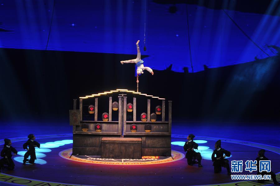 11月3日,河北省雜技團(tuán)演藝有限公司演員在表演《“生丑炫技”——倒立》。 新華社記者 牟宇 攝
