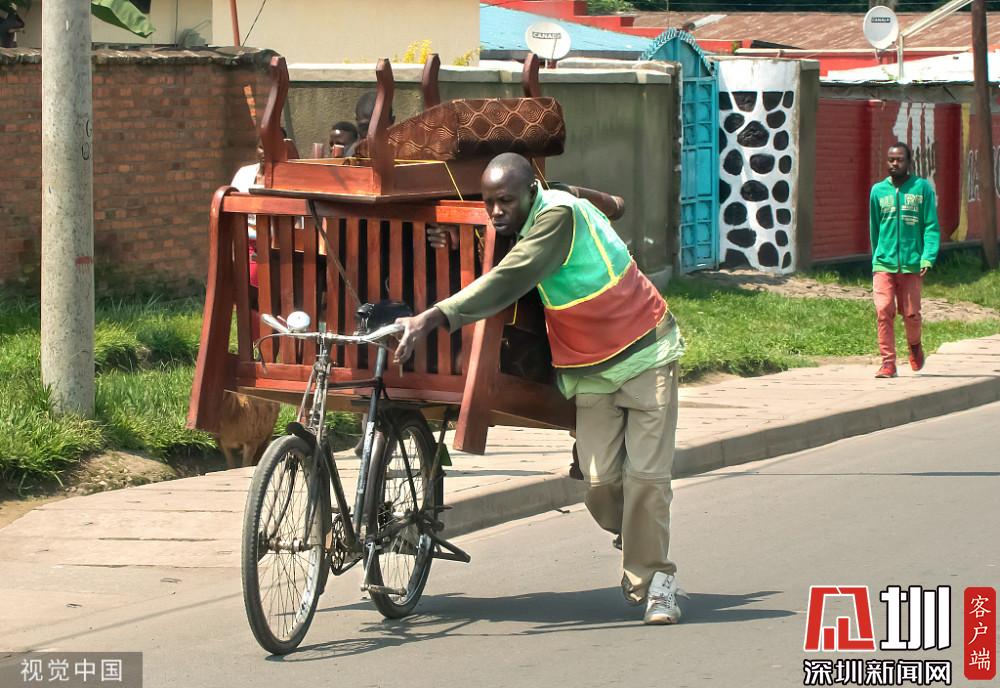 實(shí)拍靠自行車賺錢的剛果生意人,貨物堆積如山,畫面驚險(xiǎn)