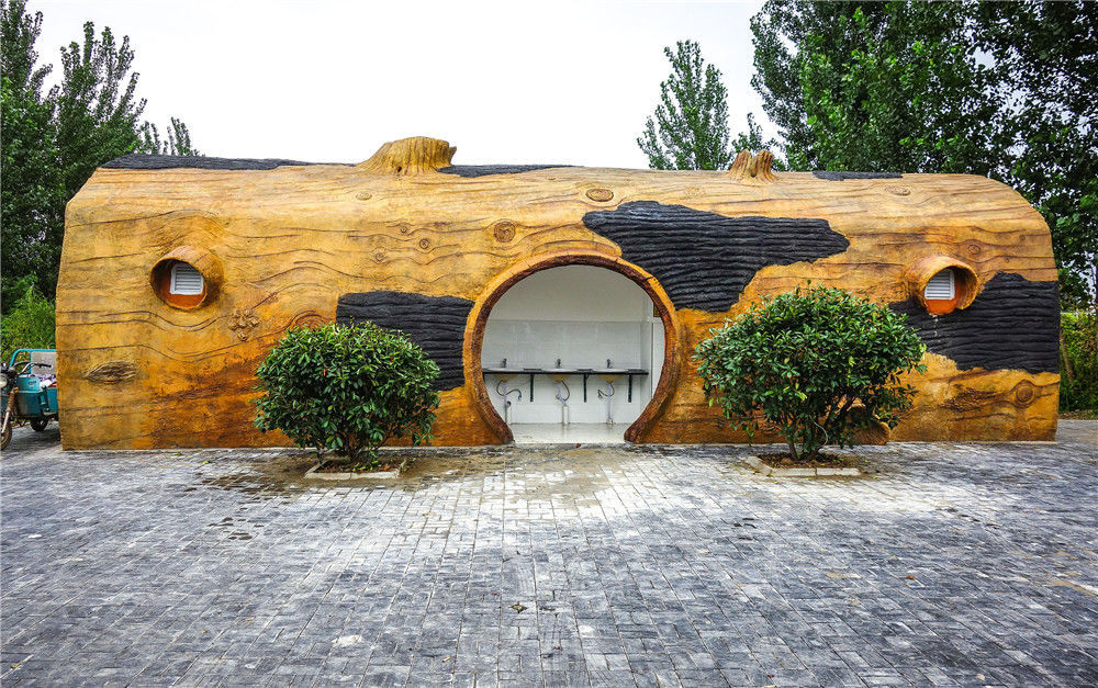 2016年8月8日,安徽淮北,一所酷似大樹干的藝術(shù)造型公廁,亮相于淮北段園鎮(zhèn)大莊村葡萄采摘園里,引來很多市民的關(guān)注。吳克濤/視覺中國