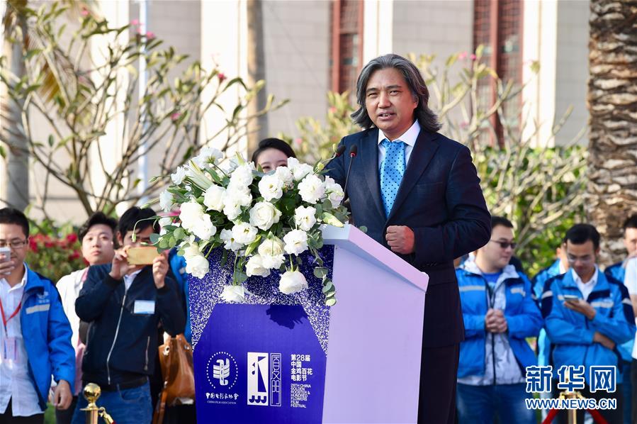 11月19日,金雞雕塑設(shè)計(jì)者、中國美術(shù)館館長吳為山在第28屆金雞百花電影節(jié)金雞雕塑揭幕儀式上致辭。新華社記者姜克紅攝