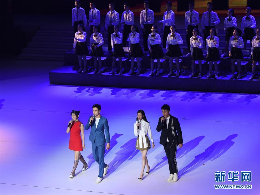 11月19日,演員代表在第28屆中國金雞百花電影節(jié)開幕式上演唱歌曲《星辰大海》。新華社記者姜克紅攝