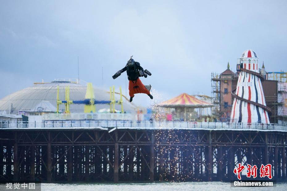 11月18日訊,英國(guó)布萊頓,英國(guó)發(fā)明家理查德·布朗寧穿著一套由身體控制、噴氣發(fā)動(dòng)機(jī)驅(qū)動(dòng)、風(fēng)力導(dǎo)向的飛行服,以高達(dá)每小時(shí)85.06英里(約137公里)的飛行速度,打破了自己創(chuàng)下的噴氣式飛行服速度的吉尼斯世界紀(jì)錄。圖片來源:視覺中國(guó)