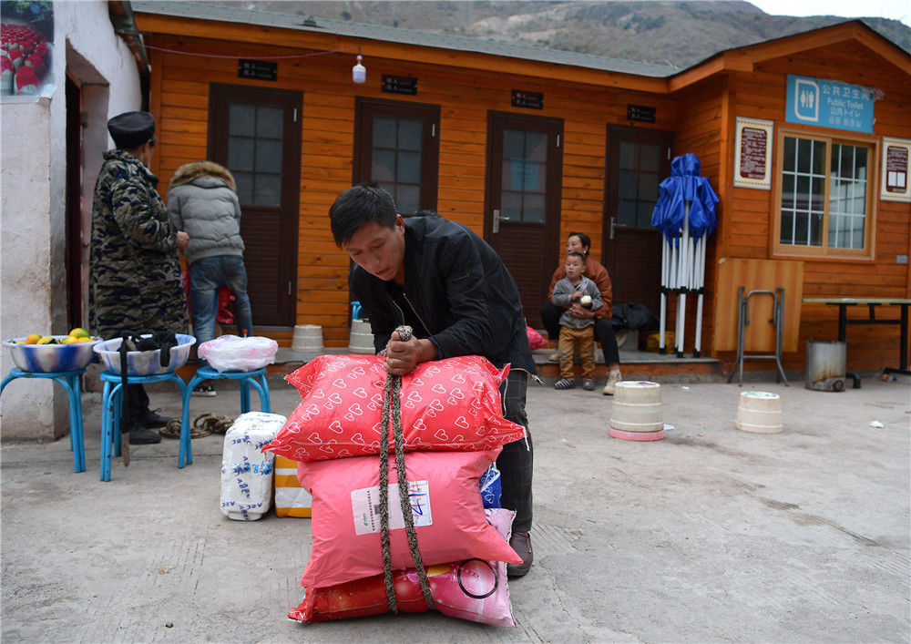 由于道路問題,村民養(yǎng)殖的牲口都運(yùn)不到山下,基本都是自產(chǎn)自銷。村民把產(chǎn)量有限的花椒和核桃背到山下,換回日用品和少量的現(xiàn)金,村民普遍處于貧困線下。圖片來源:視覺中國