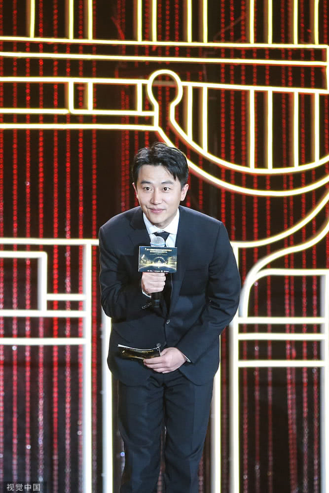 黃軒登臺發(fā)言,鞠躬盡顯禮節(jié)。