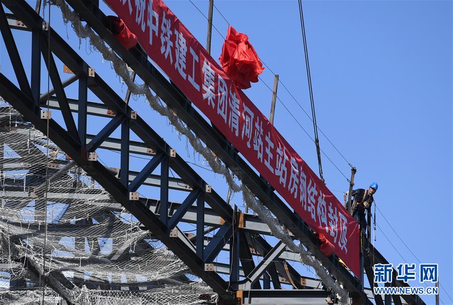 最后一組鋼梁吊裝到位(10月17日攝)。新華社記者張晨霖?cái)z