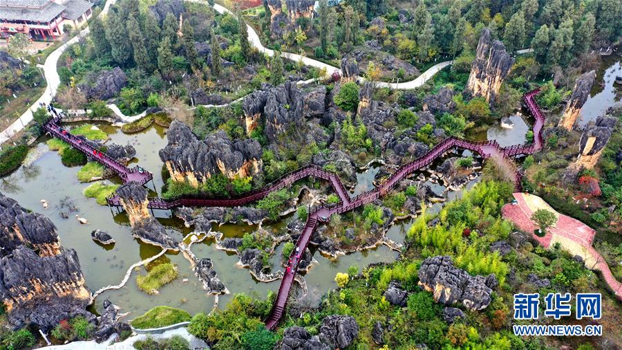 這是云南石林彝族自治縣黑石箐石林景觀(11月28日無人機拍攝)。新華社記者張愛林攝