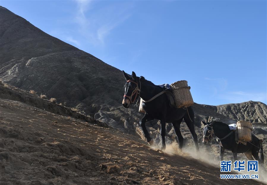 12月6日,騾馬隊(duì)馱負(fù)工程物料前往山頂塔基施工現(xiàn)場。新華社記者李楨宇攝