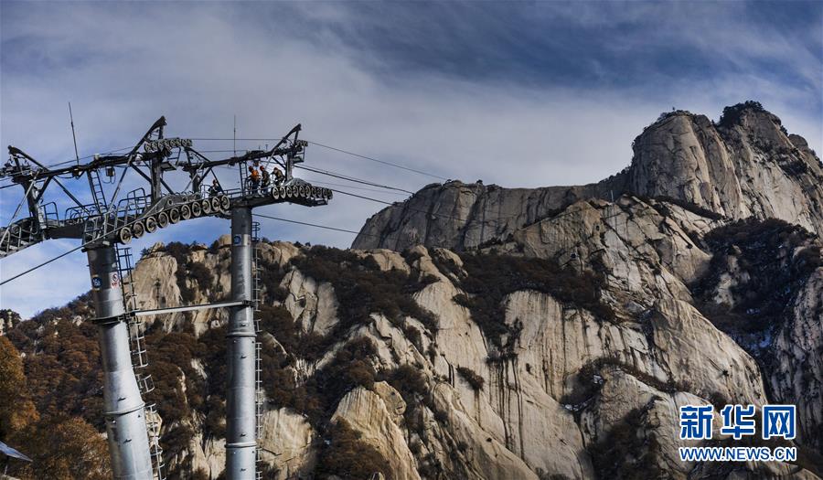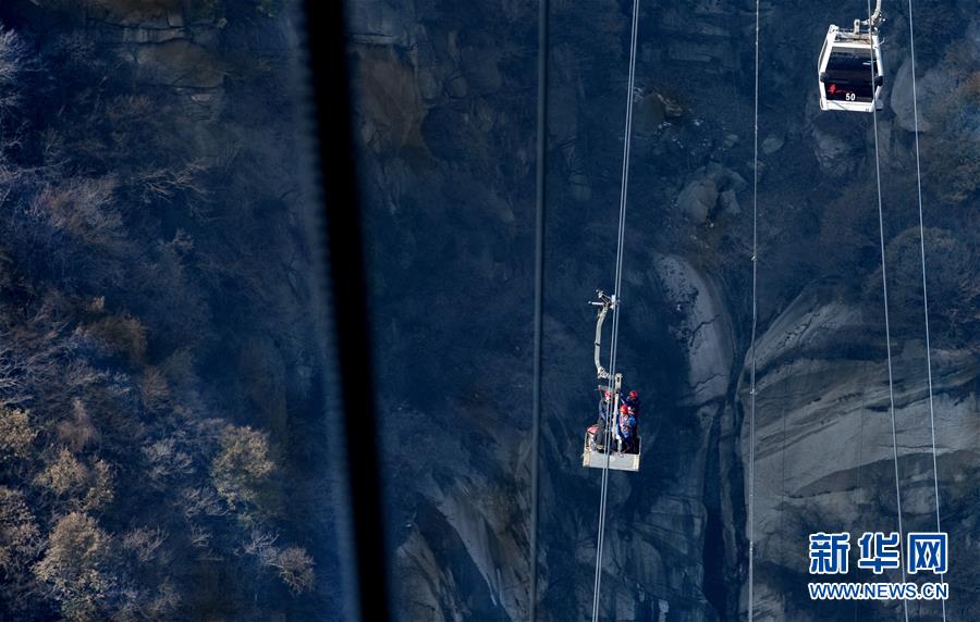 華山太華索道維修人員對(duì)索道支架及鋼絲繩進(jìn)行檢測(12月6日攝)。新華社記者陶明攝