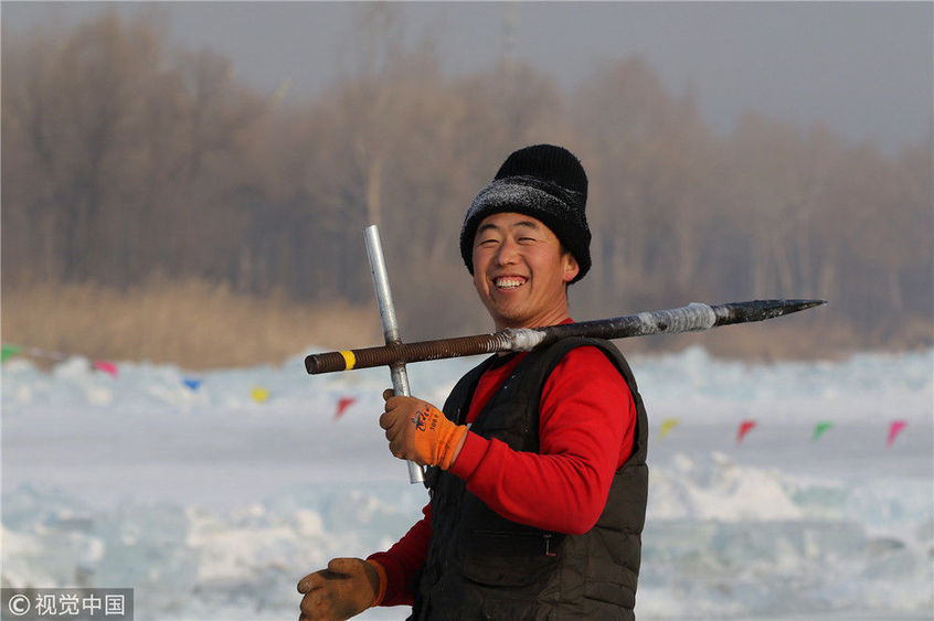 寒冬采冰人:起早貪黑 “淘金”冰雪