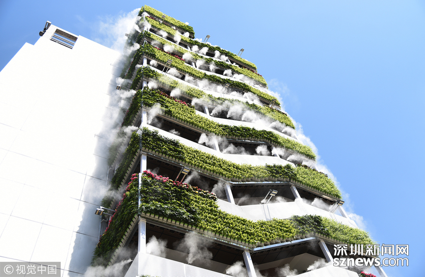 2018年6月11日,西安市眾創(chuàng)示范街區(qū)的一處安裝了智能霧森系統(tǒng)的西北最大戶外垂直綠化。