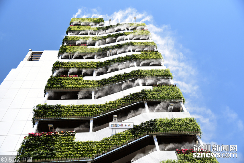 “仙氣飄飄”、“西安天氣有多熱,房子都冒煙了”,這是一段抖音小視頻里網(wǎng)友的評(píng)論留言。視頻中一棟10層高的樓外側(cè)樓梯處掛滿了綠植,同時(shí)綠植上方還有噴霧。藍(lán)藍(lán)的天空當(dāng)做背景,引來(lái)不少人上前拍照,配著背景音樂(lè)的確讓人感覺(jué)清涼無(wú)比。