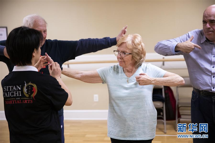 陳思坦的夫人林旭在位于美國紐約長島的一所社區(qū)老年活動中心指導(dǎo)老人練習(xí)太極(11月20日攝)。這里是陳思坦夫婦開設(shè)的一個公益教學(xué)項目。11月的紐約已進(jìn)入初冬,位于美國紐約長島的思坦太極武術(shù)中心依然一片紅火景象,學(xué)員們從5歲的孩童到80多歲的老人,操練著太極拳、太極劍、長拳等武術(shù)招式。這里的主人陳思坦、林旭夫婦,也從早忙到晚,精心指導(dǎo)每一位學(xué)員的一招一式。6歲習(xí)武,22歲成為中國全國冠軍,26歲獲得首個世界冠軍……直到30歲退役,陳思坦在運動員生涯中曾獲得過32次國內(nèi)外各類武術(shù)大賽冠軍。36歲那年,懷著以太極拳和中國武術(shù)為媒介向世界推廣中國文化的夢想,陳思坦到美國紐約尋找新的舞臺。經(jīng)過十多年的艱苦打拼,陳思坦夫婦目前在紐約長島、法拉盛和曼哈頓都開設(shè)了長期的課程,思坦太極注冊在編的各個年齡段的學(xué)員近千人,有些“高徒”現(xiàn)在自己也開班授課,將太極推向更多地方。陳思坦夫婦現(xiàn)在思考更多的是如何將太極和武術(shù)推廣給更多的美國人,并讓他們理解其中蘊(yùn)含的平衡、和諧的中國文化理念。他們創(chuàng)辦了紐約太極健身氣功活動日,在各類學(xué)校和社區(qū)開設(shè)太極或者武術(shù)課程,并利用美國的亞太裔文化月和多元文化節(jié)舉行武術(shù)和太極表演和體驗課程,讓更多美國人親眼看到、親身體會中國武術(shù)的魅力。從2011年起,他們還參與創(chuàng)辦了紐約太極大賽,如今已舉行九屆,吸引了美國、加拿大和中國國內(nèi)的隊伍參賽,影響力逐漸擴(kuò)大。新華社記者王迎攝