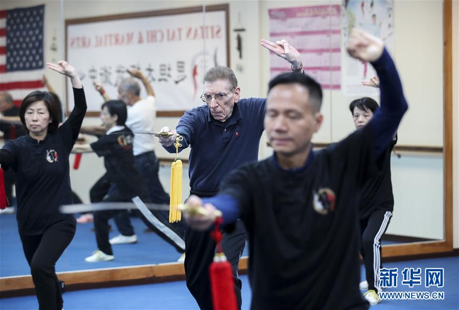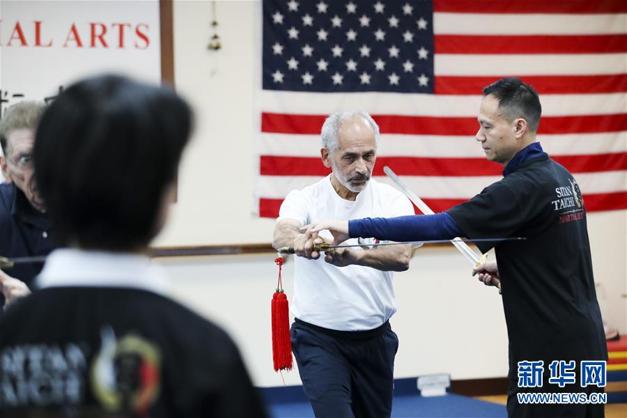 陳思坦在位于美國紐約長島的思坦太極武術(shù)中心指導(dǎo)學(xué)員練習(xí)太極劍(11月20日攝)。11月的紐約已進(jìn)入初冬,位于美國紐約長島的思坦太極武術(shù)中心依然一片紅火景象,學(xué)員們從5歲的孩童到80多歲的老人,操練著太極拳、太極劍、長拳等武術(shù)招式。這里的主人陳思坦、林旭夫婦,也從早忙到晚,精心指導(dǎo)每一位學(xué)員的一招一式。6歲習(xí)武,22歲成為中國全國冠軍,26歲獲得首個世界冠軍……直到30歲退役,陳思坦在運動員生涯中曾獲得過32次國內(nèi)外各類武術(shù)大賽冠軍。36歲那年,懷著以太極拳和中國武術(shù)為媒介向世界推廣中國文化的夢想,陳思坦到美國紐約尋找新的舞臺。經(jīng)過十多年的艱苦打拼,陳思坦夫婦目前在紐約長島、法拉盛和曼哈頓都開設(shè)了長期的課程,思坦太極注冊在編的各個年齡段的學(xué)員近千人,有些“高徒”現(xiàn)在自己也開班授課,將太極推向更多地方。陳思坦夫婦現(xiàn)在思考更多的是如何將太極和武術(shù)推廣給更多的美國人,并讓他們理解其中蘊(yùn)含的平衡、和諧的中國文化理念。他們創(chuàng)辦了紐約太極健身氣功活動日,在各類學(xué)校和社區(qū)開設(shè)太極或者武術(shù)課程,并利用美國的亞太裔文化月和多元文化節(jié)舉行武術(shù)和太極表演和體驗課程,讓更多美國人親眼看到、親身體會中國武術(shù)的魅力。從2011年起,他們還參與創(chuàng)辦了紐約太極大賽,如今已舉行九屆,吸引了美國、加拿大和中國國內(nèi)的隊伍參賽,影響力逐漸擴(kuò)大。新華社記者王迎攝