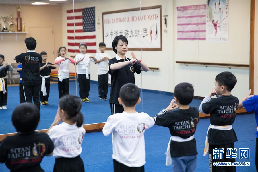 陳思坦的夫人林旭在位于美國紐約長島的思坦太極武術(shù)中心指導(dǎo)小學(xué)員練習(xí)武術(shù)(11月20日攝)。11月的紐約已進(jìn)入初冬,位于美國紐約長島的思坦太極武術(shù)中心依然一片紅火景象,學(xué)員們從5歲的孩童到80多歲的老人,操練著太極拳、太極劍、長拳等武術(shù)招式。這里的主人陳思坦、林旭夫婦,也從早忙到晚,精心指導(dǎo)每一位學(xué)員的一招一式。6歲習(xí)武,22歲成為中國全國冠軍,26歲獲得首個世界冠軍……直到30歲退役,陳思坦在運動員生涯中曾獲得過32次國內(nèi)外各類武術(shù)大賽冠軍。36歲那年,懷著以太極拳和中國武術(shù)為媒介向世界推廣中國文化的夢想,陳思坦到美國紐約尋找新的舞臺。經(jīng)過十多年的艱苦打拼,陳思坦夫婦目前在紐約長島、法拉盛和曼哈頓都開設(shè)了長期的課程,思坦太極注冊在編的各個年齡段的學(xué)員近千人,有些“高徒”現(xiàn)在自己也開班授課,將太極推向更多地方。陳思坦夫婦現(xiàn)在思考更多的是如何將太極和武術(shù)推廣給更多的美國人,并讓他們理解其中蘊(yùn)含的平衡、和諧的中國文化理念。他們創(chuàng)辦了紐約太極健身氣功活動日,在各類學(xué)校和社區(qū)開設(shè)太極或者武術(shù)課程,并利用美國的亞太裔文化月和多元文化節(jié)舉行武術(shù)和太極表演和體驗課程,讓更多美國人親眼看到、親身體會中國武術(shù)的魅力。從2011年起,他們還參與創(chuàng)辦了紐約太極大賽,如今已舉行九屆,吸引了美國、加拿大和中國國內(nèi)的隊伍參賽,影響力逐漸擴(kuò)大。新華社記者王迎攝