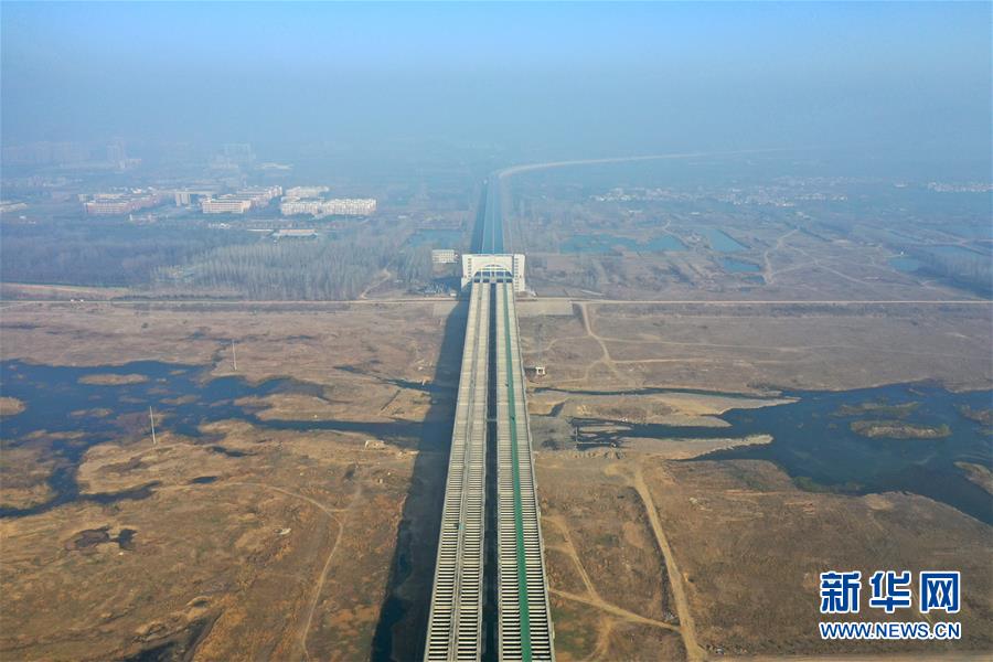 這是12月9日無人機(jī)拍攝的南水北調(diào)中線總干渠沙河渡槽工程。新華社記者馮大鵬攝