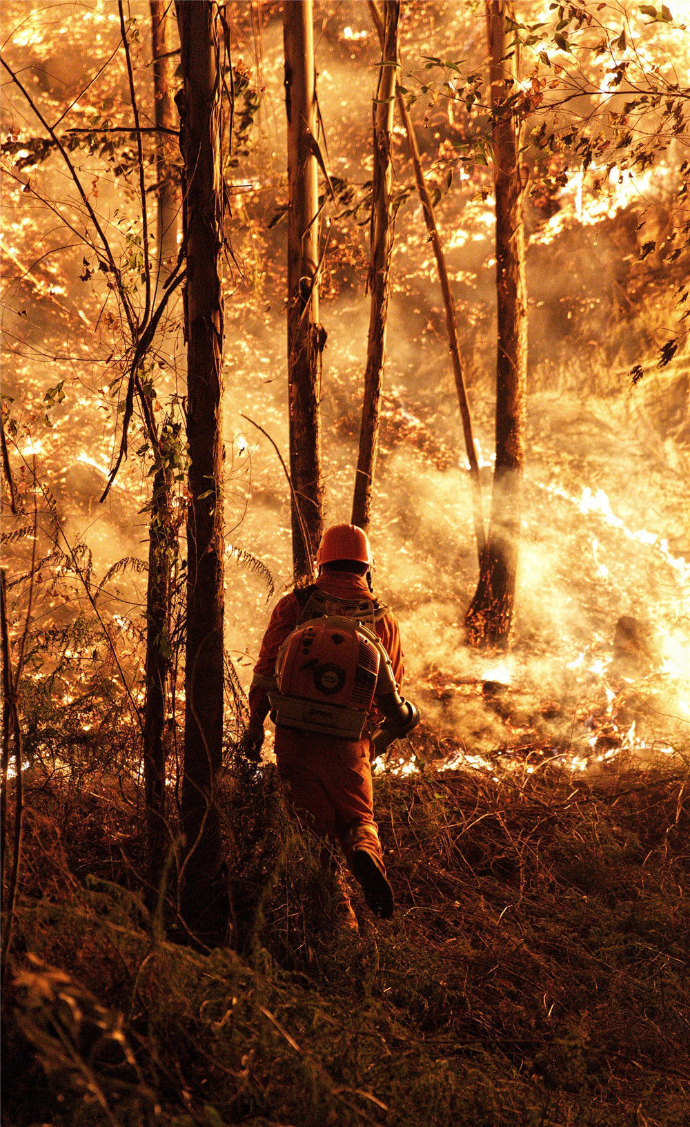 2019年12月7日凌晨一時多,廣東佛山,來自英德東華鎮(zhèn)的消防員們摸黑上山作業(yè)。經(jīng)過大約一個小時的奮戰(zhàn)后,山頭明火得到有效控制。
