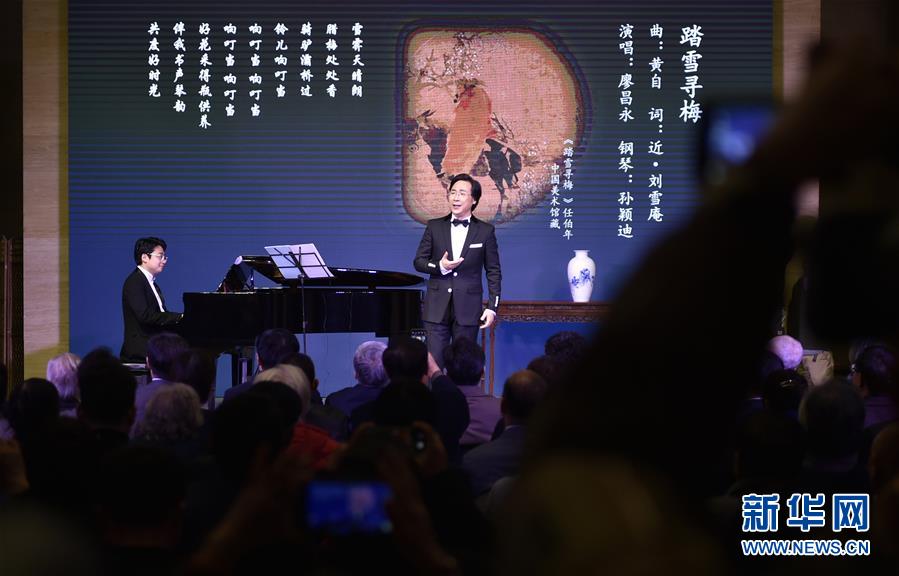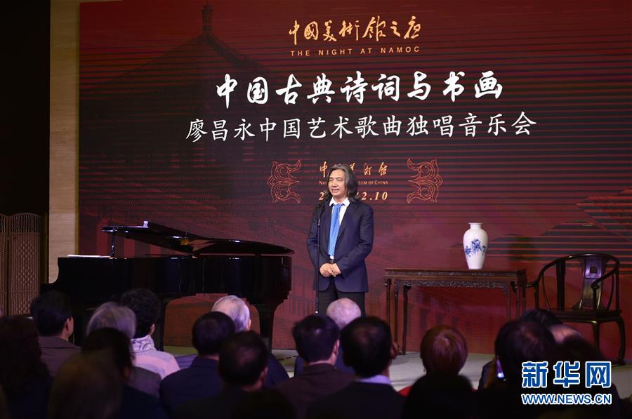 12月10日晚,廖昌永在音樂會上演唱《踏雪尋梅》。 當晚,中國古典詩詞與書畫——廖昌永中國藝術歌曲獨唱音樂會在北京中國美術館舉行。 新華社記者 魯鵬 攝