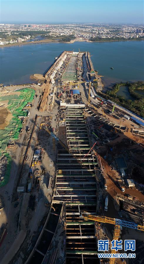 正在施工的??谖拿鳀|越江通道項(xiàng)目(12月14日無(wú)人機(jī)拍攝)。 新華社記者 郭程 攝