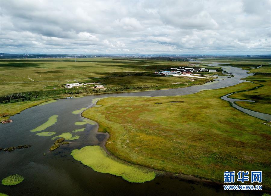 8月28日無(wú)人機(jī)拍攝的呼倫湖國(guó)家級(jí)自然保護(hù)區(qū)。新華社記者任軍川攝